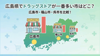 広島県にあるドラッグストアのうちどの市が一番店舗数が多いのかについて解説した記事になります1~3位までの合計数や分布の特徴について解説しています